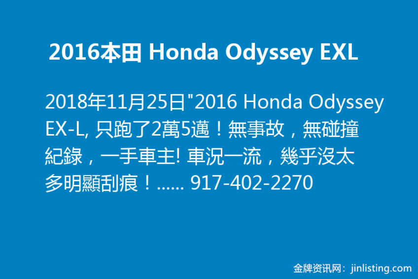 “2016 Honda Odyssey EX-L, 只跑了2萬5邁!