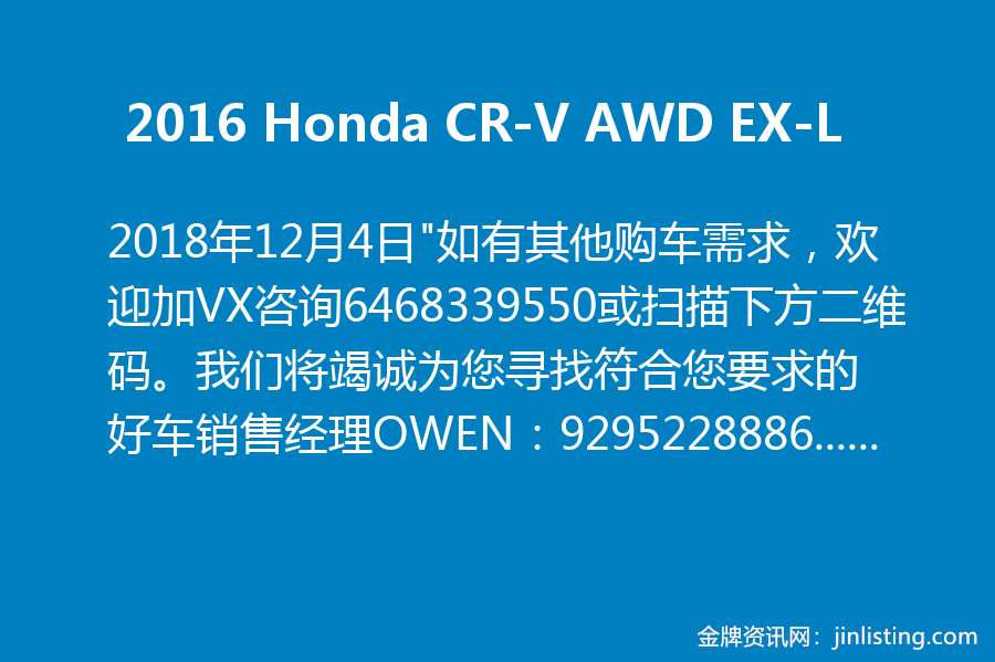 2016 Honda CR-V AWD EX-L 欢迎咨询646-833-9550