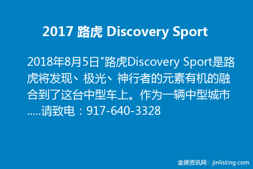 “路虎Discovery Sport是路虎将发现丶极光丶神行者的元素有机的融合到了这台中型车上。作为一辆中型城市SUV Discovery Sport她成功的融合了优雅和野性,搭载245马力2.0T发动机即便在荒野也给你足够的自信,采用ZF 9速变速器更多的档位让城市驾驶提速更加平缓舒适。同时这是一辆非常亲民的路虎,拥有路虎强大的越野四驱系统提供普通驾驶模式,雪地丶草地丶沙石驾驶模式,在冬天漫长的纽约雪地模式尤其显得实用。Discovery Sport是一辆7坐SUV是家用出游的明智之选。更多详情欢迎到店试驾。。。。。