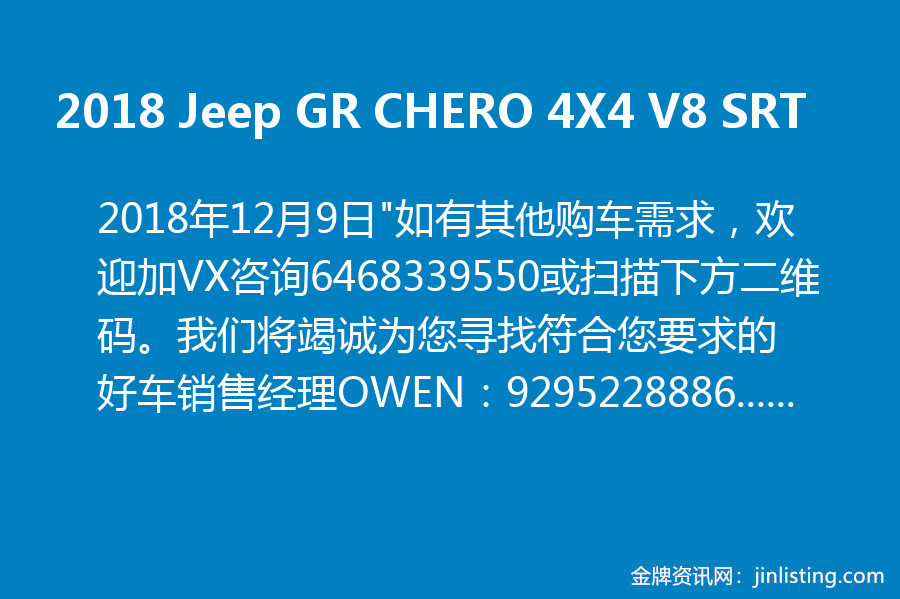 2018 Jeep GR CHERO 4X4 V8 SRT 欢迎咨询 646-833-9550