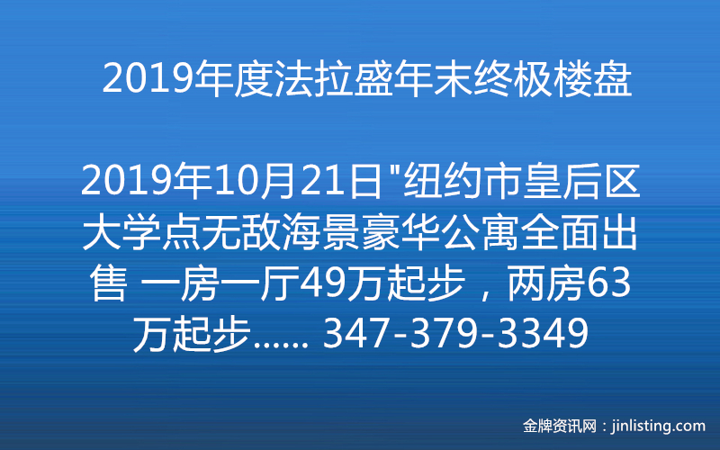 2019年度法拉盛年末终极楼盘 347-379-3349