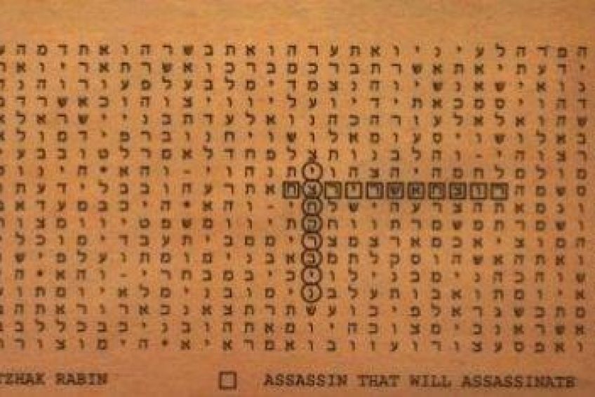 再比如从圣经中,间隔一定数量的字母去寻找“伊扎克·拉宾”这个词,结果发现这个名字出现了一次,是每跳跃4772个字母取得的。于是将整本圣经按每4772个字母取一个字母,最后在与“伊扎克·拉宾”相交的地方,找到“刺客将行刺”,后又找到“艾米尔”(刺客的名字)。用这种方法还能找到“拉宾遇刺”、“特拉维夫”、“5756”(希伯来年,相当于公历1995年)这些单词。于是得出预言:伊扎克·拉宾将于1995年遇刺,被刺杀地点是以色列特拉维夫,杀手是艾米尔。