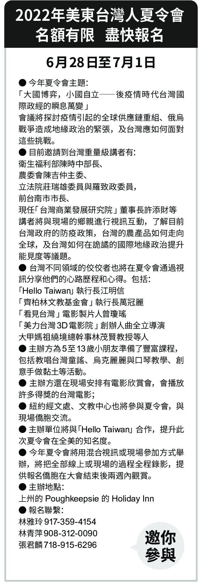 ● 紐約經文處、文教中心也將參與夏令會,與現場僑胞交流。