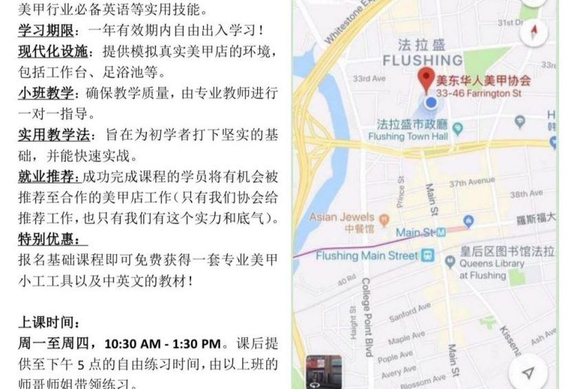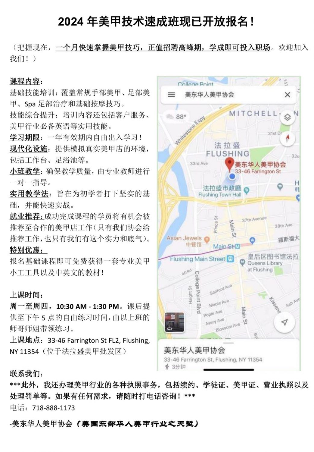 上课地点:33-46 Farrington St FL2, Flushing, NY 11354(位于法拉盛美甲批发区)