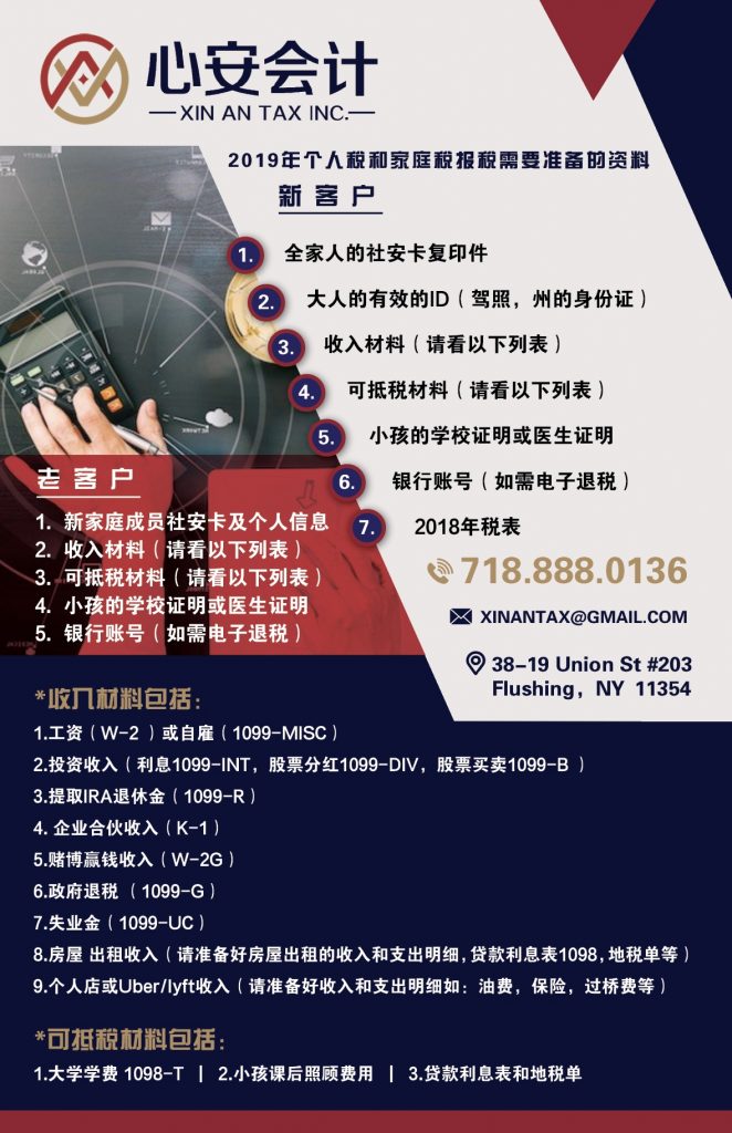 电话:718-888-0136 邮箱:xinantax@gmailcom 地址38-19 Union St, Suite #203 Flushing, NY 11354
