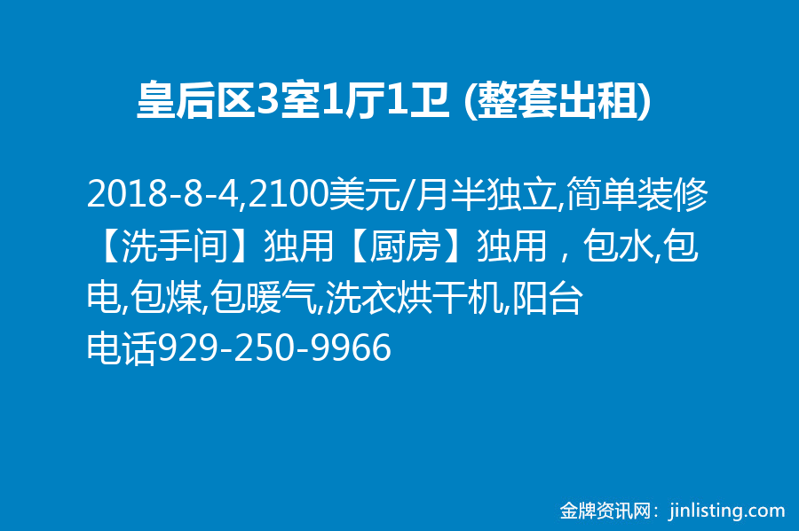 【出租房间】 3室 1 厅 1 卫 (整套出租)