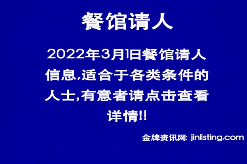 请人 上州铁板店请全职和兼职前台和企台各一名法拉盛接送有意者电9172932918