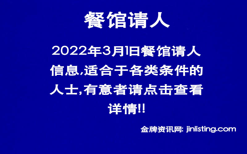 波士顿请人包吃住 波士顿餐馆请年轻人,可独挡一面,未来可成为店长。无需太多经验,能吃苦有责任心即可。包吃住待遇优,需报税 请电3478278529