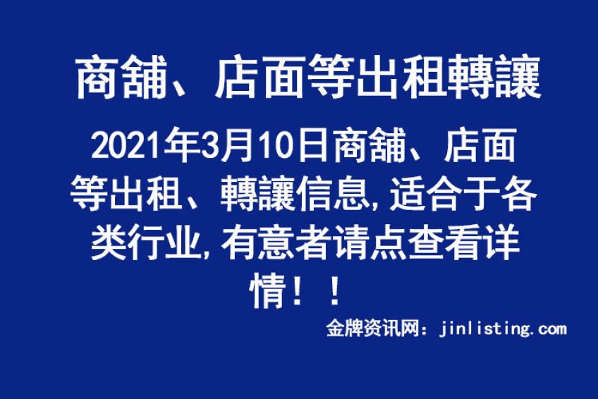 3月10日商舖、店面等出租、轉讓