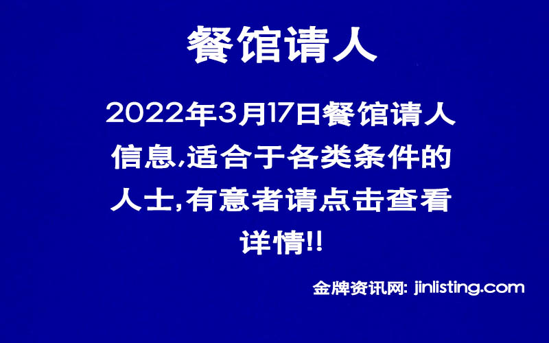 日餐诚请经验企台和铁板师傅,中午有关门午休,法拉盛十五分钟接送,有意者电3473793547