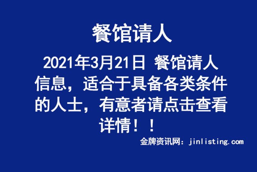 法拉盛餐馆请企台 小费好,年轻人事少。有经验优先。电:9176509603