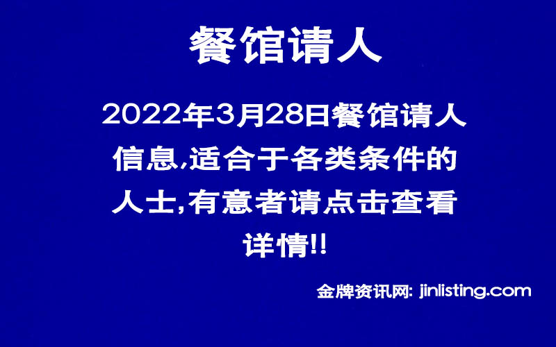 中餐馆请企台,需要会英语会接电话,勤快能干,做事利索,时薪+小费,电话 9179159787