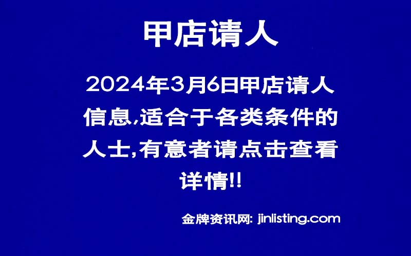 康州白区甲店请大中小工,夫妻工,单间住宿,保底20%小费,各项都有提成,隔壁大型超市,电话短信646-515-3573.