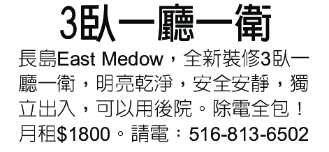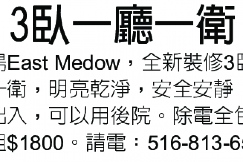 長島east Medow, 全新裝修3 臥1廳1衛,明亮乾淨,安全安靜,獨立出入, 可以用後院。除電全包!月租 $1800。