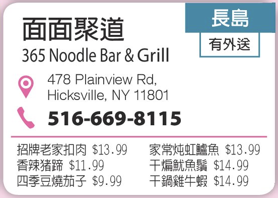 365 Noodle Bar and Grill提供美味的中餐,例如脆皮烤羊腿,炒牛肉,炒猪肚等等。如果您喜欢中餐,那么365 Noodle Bar and Grill是您最佳的选择之一。