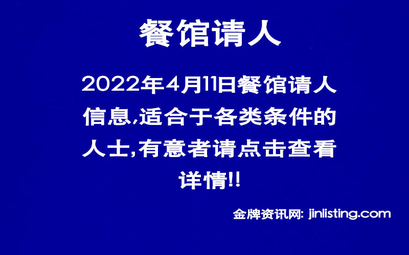 长岛亚洲餐请企台一名,可入住、可自驾,有意者请联系6316096752