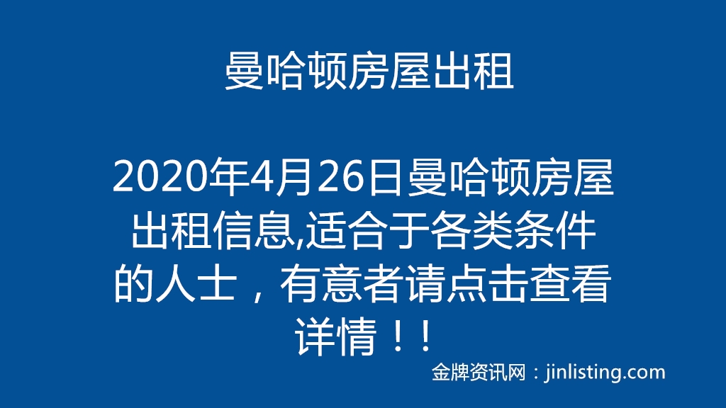 1 、纽约曼哈顿中城带家具两室一厅出租$3000/月 “纽约曼哈顿中城带家具两室一厅出租$3000/月