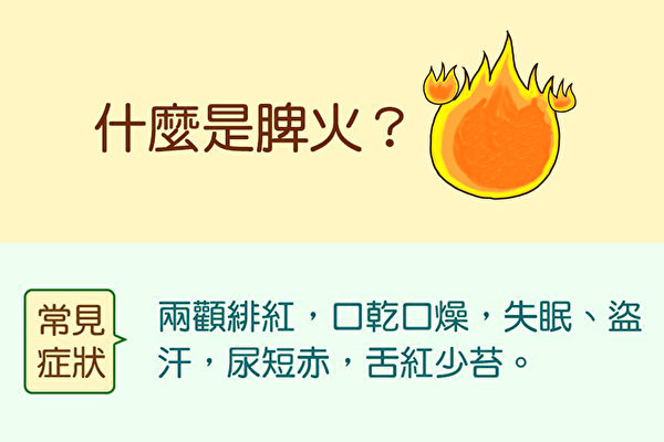 什么是脾火?脾火大多因脏腑阴阳失衡,津液耗损,再加外邪引动所造成的虚火。常见症状是两颧绯红、口干口燥、失眠、盗汗、尿短赤、舌红少苔。4种食物帮你降火。
