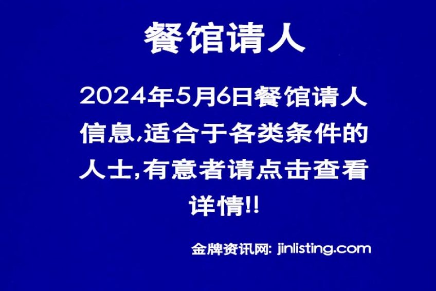 餐厅请人,请洗碗清洁阿姨,另请前台,工作地点 布鲁克林 “餐厅请人,请洗碗清洁阿姨,电话:3472186682 工作地点