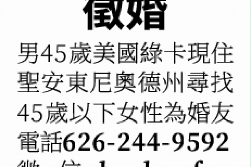 男45歲美國綠卡.現住聖安東尼奧德州.尋找45歲以下女性為婚友