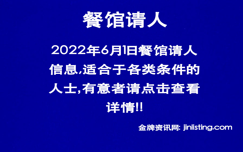 上州好区亚洲餐请企台 “请企台,小费好,收入高,需报税。