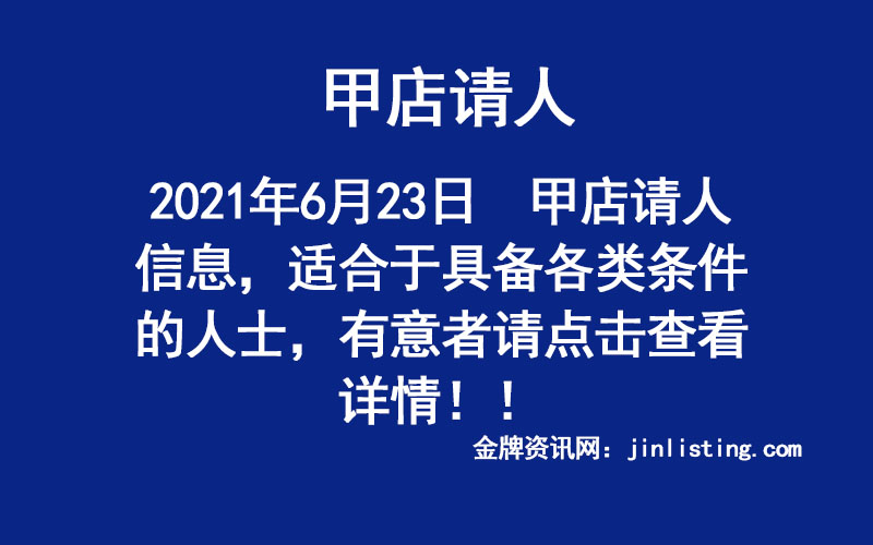 甲店请人 繁忙甲店诚请小工提成多薪优。请电9175282782