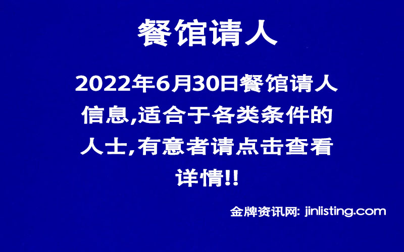 餐馆请企台传菜 “法拉盛中心餐厅请企台传菜