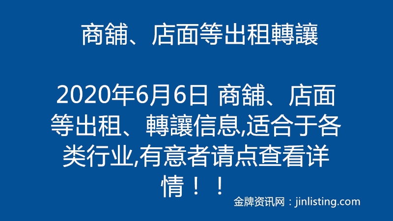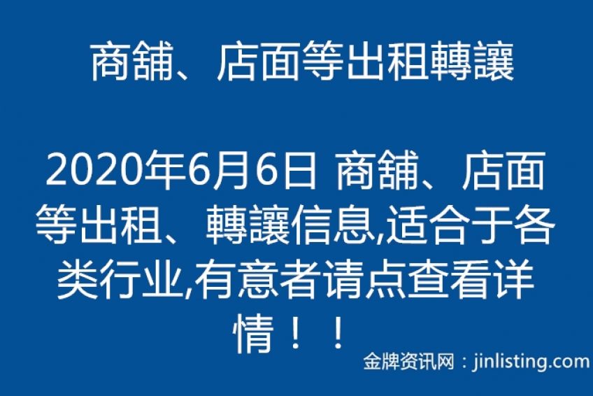 6月6日 商舖、店面等出租、轉讓