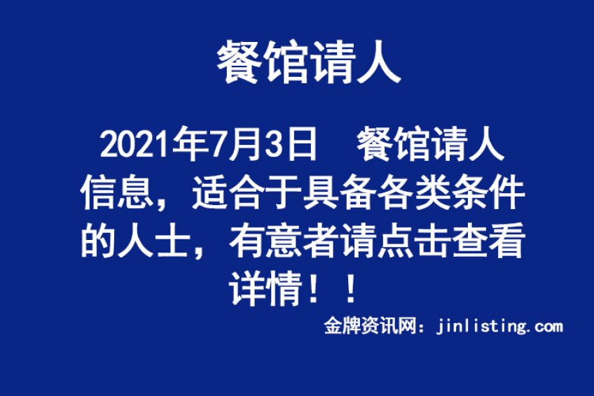 法拉盛中餐馆招聘前厅各岗位人员 “法拉盛餐厅真诚请企台 /busboy/收银/代位