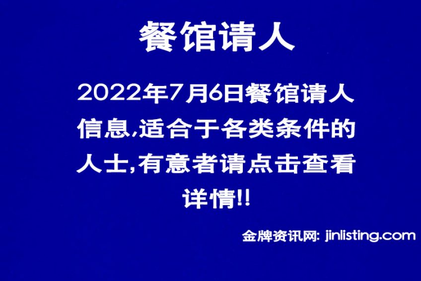 餐馆招聘企台 待遇好 法拉盛餐馆招聘服务员底薪➕小费 要求年龄40岁以下请熟手收银 长期稳定工作能力强 有责任心☎️718-795-6999
