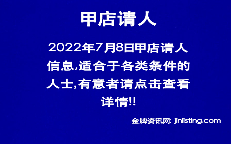 “新澤西甲店,法拉盛接送,誠招半熟手/熟手小工,只要会做胶手脚,不用做胶泡得,另召周頭可以幫忙開車的小工,老闆事少,工人和諧,歡迎你的加入,35分鐘車程