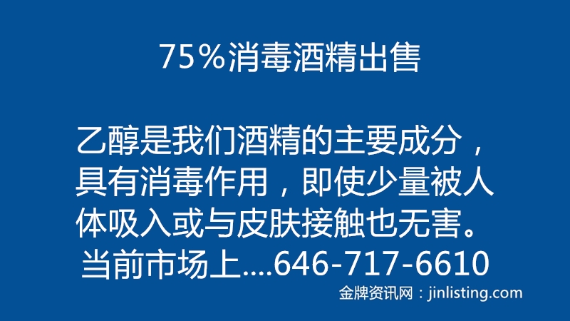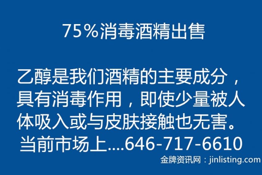 75%消毒酒精出售 646-717-6610