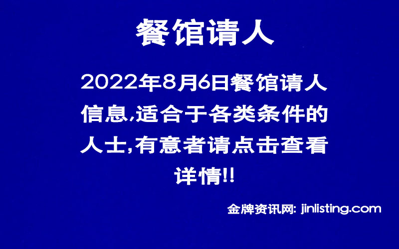 全日餐请经验收银和企台各1位,有意请电631 462 1000或646 6964022发短信