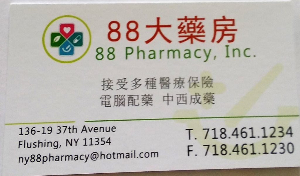 88大藥房-718.461.1234 136-19 37th Avenue, Flushing, NY 11354美国