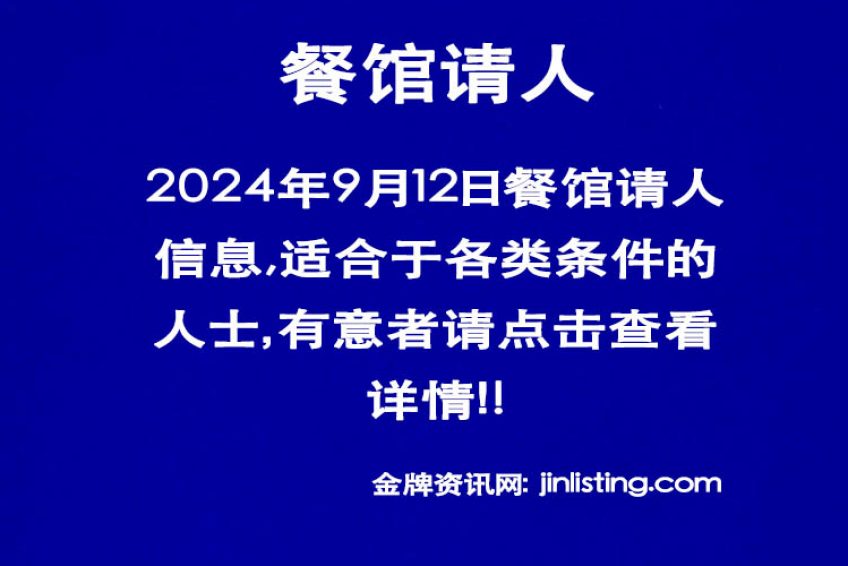 法拉盛粤餐厅请熟手企台 “粤餐厅请年轻熟手男企台
