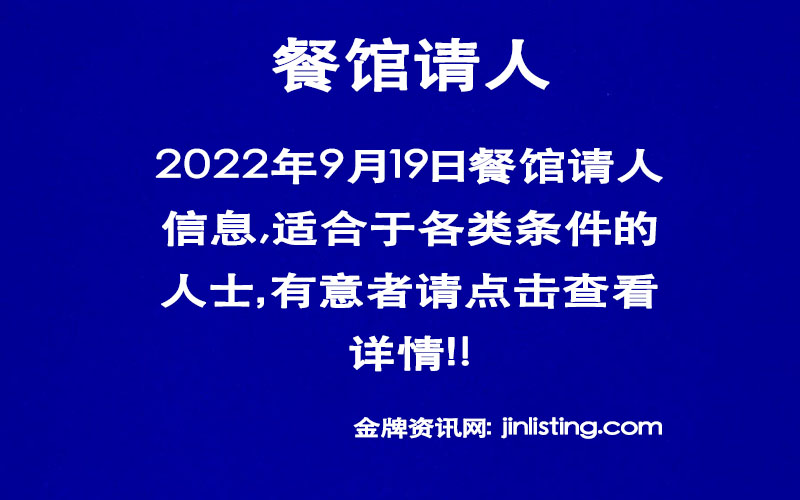 餐馆请人 《歺馆请人》现招聘以下职位:(一)有经验歺厅经理(二)熟手收银(三)熟手出歺打包(四)机器操作员(懂机械者优先)(五)司机(歺厅配送员)以上岗位均需报税,有意请电:917-806-2923 646-420-8000