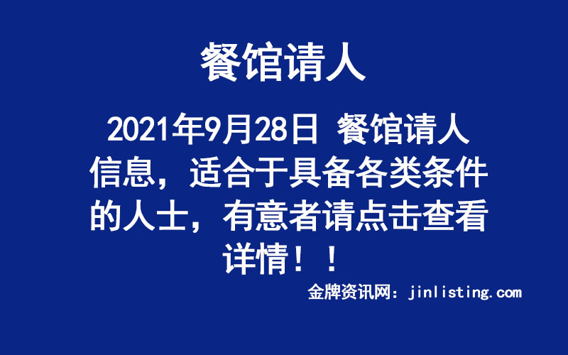 請包外卖[星期二9/28/21] 长岛中日餐馆请熟手,包外卖[星期二]有意请电,917-885-8828