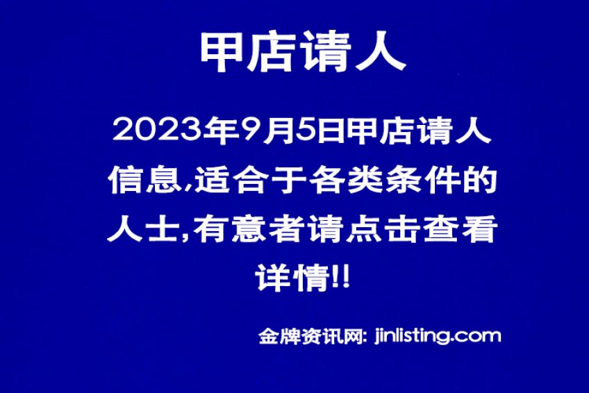 “康州甲店招大工 中工 小工 店里不事 年轻老板 下班准时