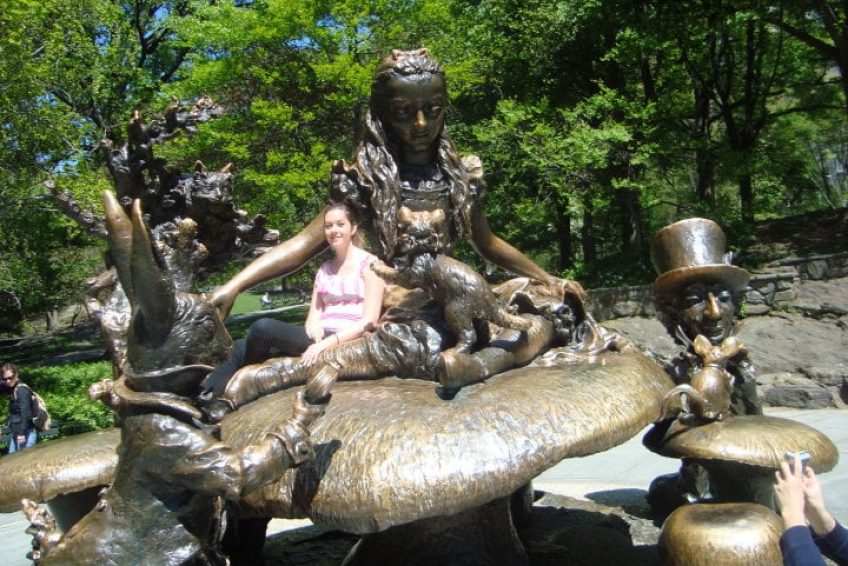 爱丽丝梦游仙境雕塑位在中央公园的大水池附近,是一个很漂亮的雕塑,所有爱丽丝梦游仙境里的人物都在上面