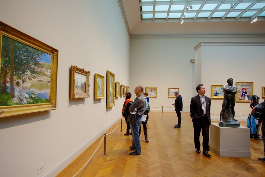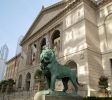 这间全美顶尖的艺术博物馆更以收藏大量的印象派与后印象派大师的作品以及美国艺术品而闻名,例如莫奈、梵高、毕加索、雷诺、卡勒波特等超过350件大师的作品。同时也是美国前三大超现实主义作品收藏地之一。如果看到博物馆门前左右两侧的青铜石狮被披上了衣服一定不要觉得古怪,在芝加哥的冰球队和橄榄球队进入赛季决赛时,他们都会穿戴起球队的衣服或球帽为球队加油。
