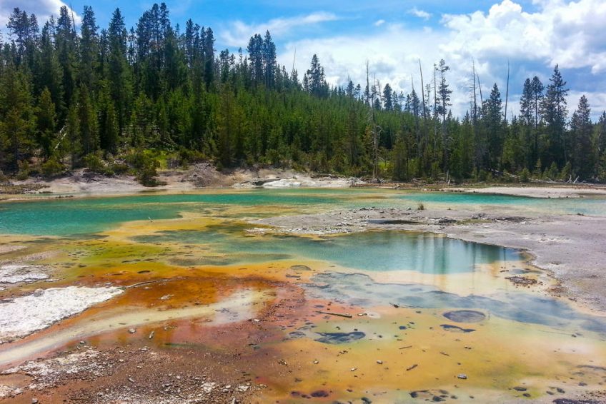 喷泉把多种矿物和喷发的气体带到地面上来,这些外表呈黄色的矿物是黄石公园中最多的色彩,黄石之名也由此而来。
