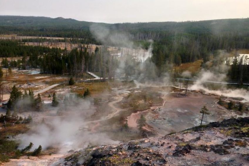 黄石公园地区原是印地安人狩猎区,欧洲移民迁入后,印地安人逐渐迁移离开。1807年欧洲探险队第一次到美国,当时有一位白人约翰‧科特尔(John Colter)接受皮毛狩猎队的邀请,加入探查勘究。有一天,他发现眼前浓烟密布的地热奇观,熔岩处处,到处都有温泉群,色彩绚丽,光彩夺目。他认为他看到了天堂瑰丽的美景,也感受到了地域的神秘与诡异,他发现了黄石风景区。