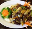 L29. Mongolian Beef Lunch Special served with pork fried rice, white rice or brown rice and wonton, egg drop or hot and sour soup or egg roll. hot and spicy.  6.50