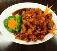 S15. Dragon And Phoenix chunks of crispy chicken with brown sauce with prawns chili sauce on the side. hot and spicy.  10.95