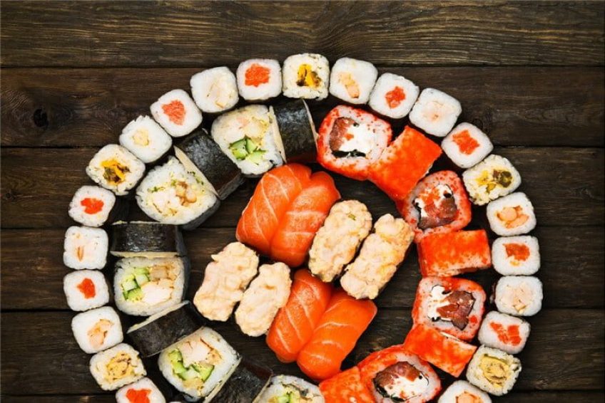 | Sushi five pieces of assorted fish on rice with a california roll. served with your choice of side. | 11.50 | ||