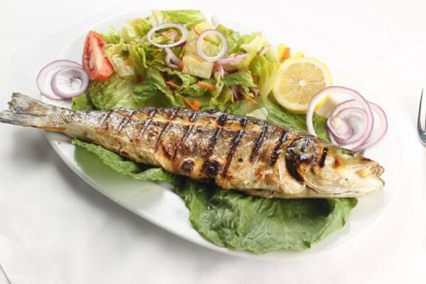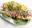 一条完整的鲈鱼,双面煎烤,淋上新鲜的柠檬汁,鱼皮焦脆,鱼肉鲜嫩,仅有一根大刺,是最受欢迎菜品之一。(张学慧/大纪元)