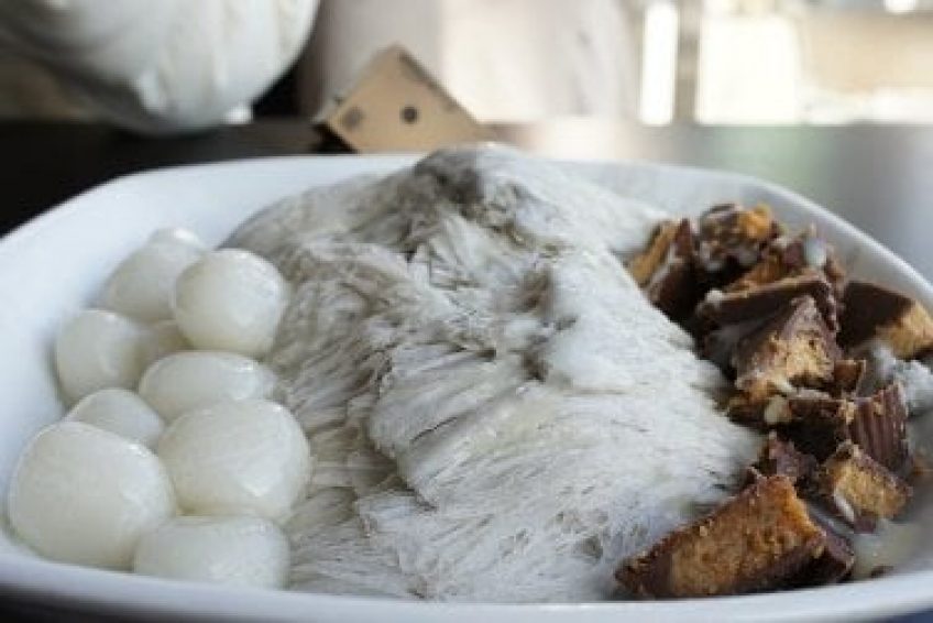 在UCLA附近有一家小企鵝標誌的冰店「Blockheads Shavery」,顧客每天都排著長長隊伍,這裡的綿綿冰和麻糬味道一流,不僅吸引許多學生光顧,很多甜品愛好者也專程驅車前來品嚐。 「Blockheads Shavery」店招牌上有一隻可愛的企鵝,店內牆上也掛著很多企鵝圖片,顧客們簡稱它為「小企鵝綿綿冰」,這家店坐落在西洛杉磯Sawtelle和Westwood附近,店面不大,只有不到十張桌子,卻擋不住長長的隊伍排到深夜。這裡的綿綿冰有很多口味,包括黑芝麻丶綠茶丶南瓜丶芒果丶草莓等,最受歡迎的黑芝麻味是澹澹的灰褐色,吃起來有濃郁芝麻香,絲絲入口清爽無比;綠茶口味很適合夏天,口感有大自然的味道;南瓜味的冰品不常見,在這里南瓜味不只是萬聖節的口味,每天都有!綿綿冰旁邊可以搭配麻糬和新鮮水果粒,這裡的麻糬非常受歡迎,軟軟糯糯入口即化,裹上綿綿冰吃很有趣,值得一提的是,外賣杯子上也印有小企鵝頭像,遠看像一個戴著冰淇淋帽子的小企鵝,讓很多女孩愛不釋手。
