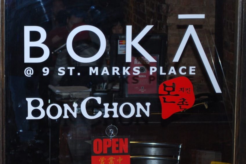 地下室韩国餐馆很受学生和提供BonChon鸡翅鸡腿及。
