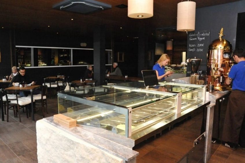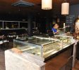 宽敞的咖啡厅内分有不同的区域:咖啡吧、果汁吧、糕点区、冰淇淋区,还有汤、沙拉及三明治区。同时还有可供60人就餐的顾客区。