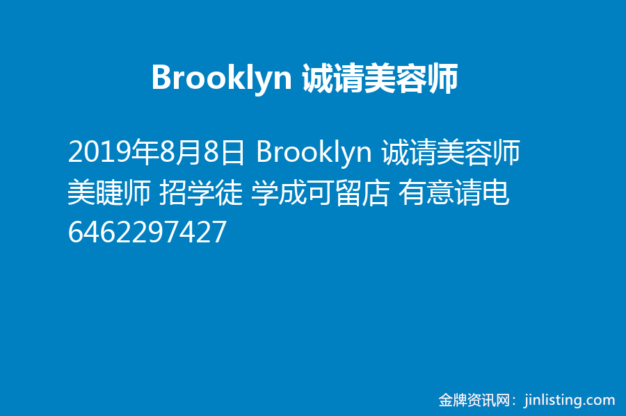 Brooklyn 诚请美容师 美睫师 招学徒 学成可留店 有意请电6462297427